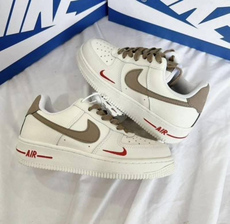 Nik_e Airforc e 1 Mini red swoosh milk coffee