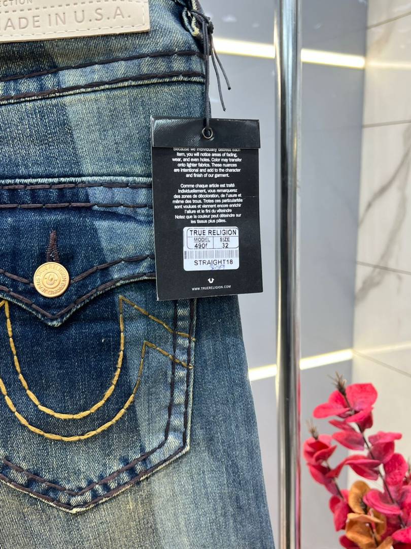 True Religio n Blue Shade Premium Imported Stretchable Lycra Fabric Straight fit Denim with Back Flap pocket Design 3688