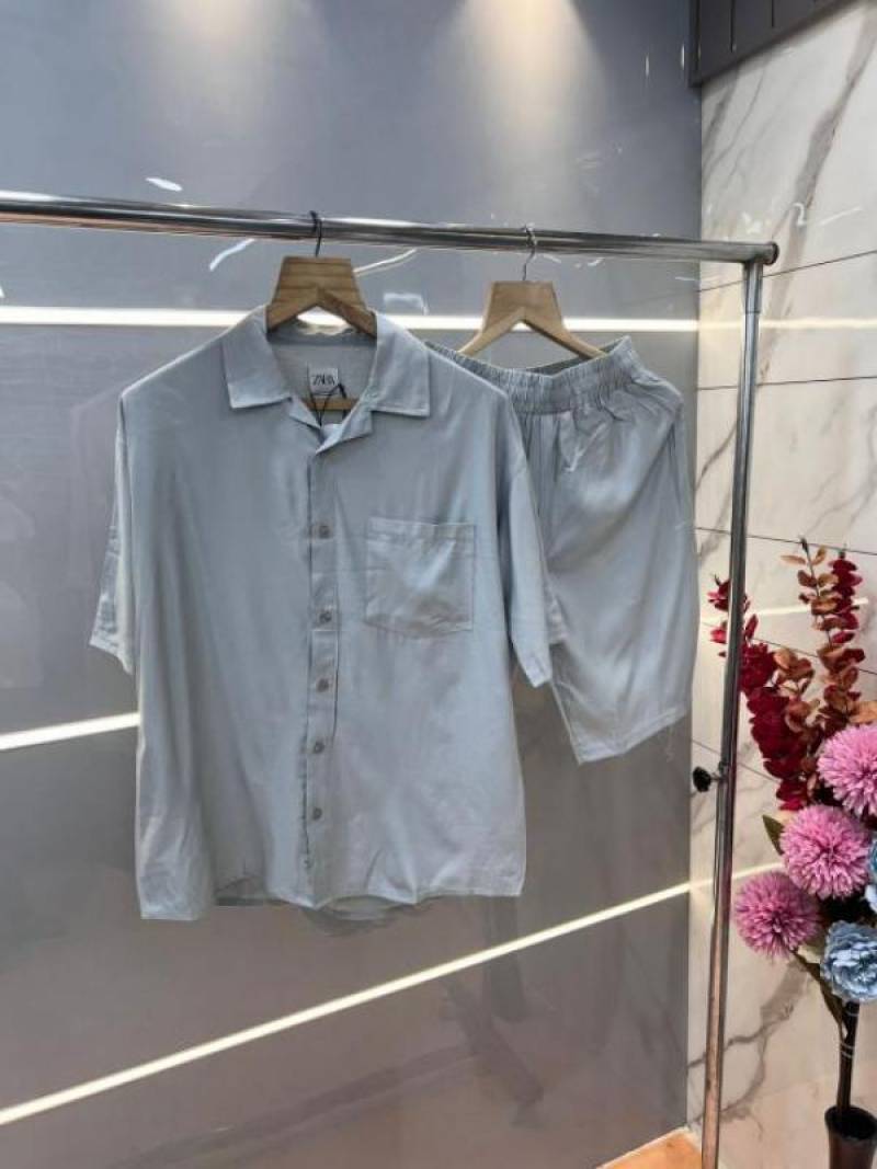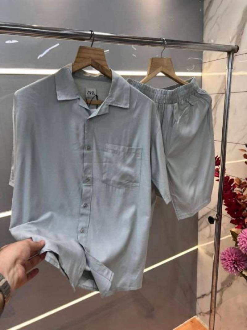 Zar a English Green Premium Imported Cotton Lycra Fabric Cuban Collar Cord Set with Carry Bag 2342